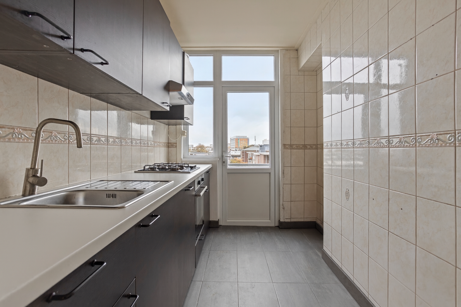 Zodra je binnenkomt, valt het natuurlijke licht direct op – dankzij de grote ramen en de gunstige ligging is elke ruimte aangenaam helder. De woonkamer is ruim en biedt volop mogelijkheden voor een gezellige zithoek en eethoek. De moderne keuken is netjes afgewerkt en voorzien van een gaskookplaat, oven, afzuigkap en voldoende kastruimte. Vanuit hier is er toegang tot het balkon met vrij uitzicht, perfect voor een kop koffie in de zon of een ontspannen avondmoment.