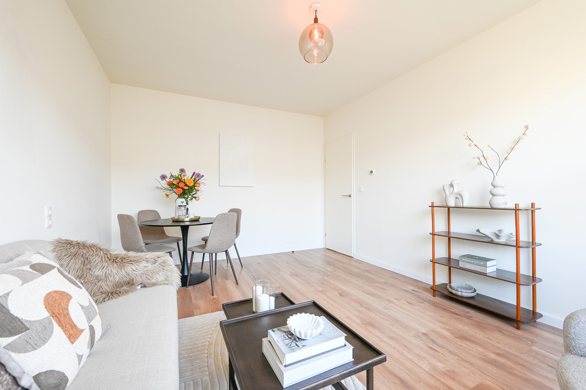 Van leidingen en elektra tot aan de keuken, badkamer, muren, en afwerking – alles is gedaan. De lichte woonkamer vormt een fijne open leefruimte. De keuken is uitgerust met inbouwapparatuur: